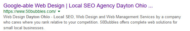 - Description Metatag: Describes why somebody that finds your title listed in a Google search should click through to the page. This is one of the most overlooked aspects of your description meta-tag. We tell our clients: "You have to SELL the click". Don't just look like nine other listings on the page.
